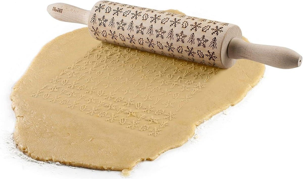 Winterprint deegroller - traditionele keuken accessoire met sneeuwvlok ontwerp