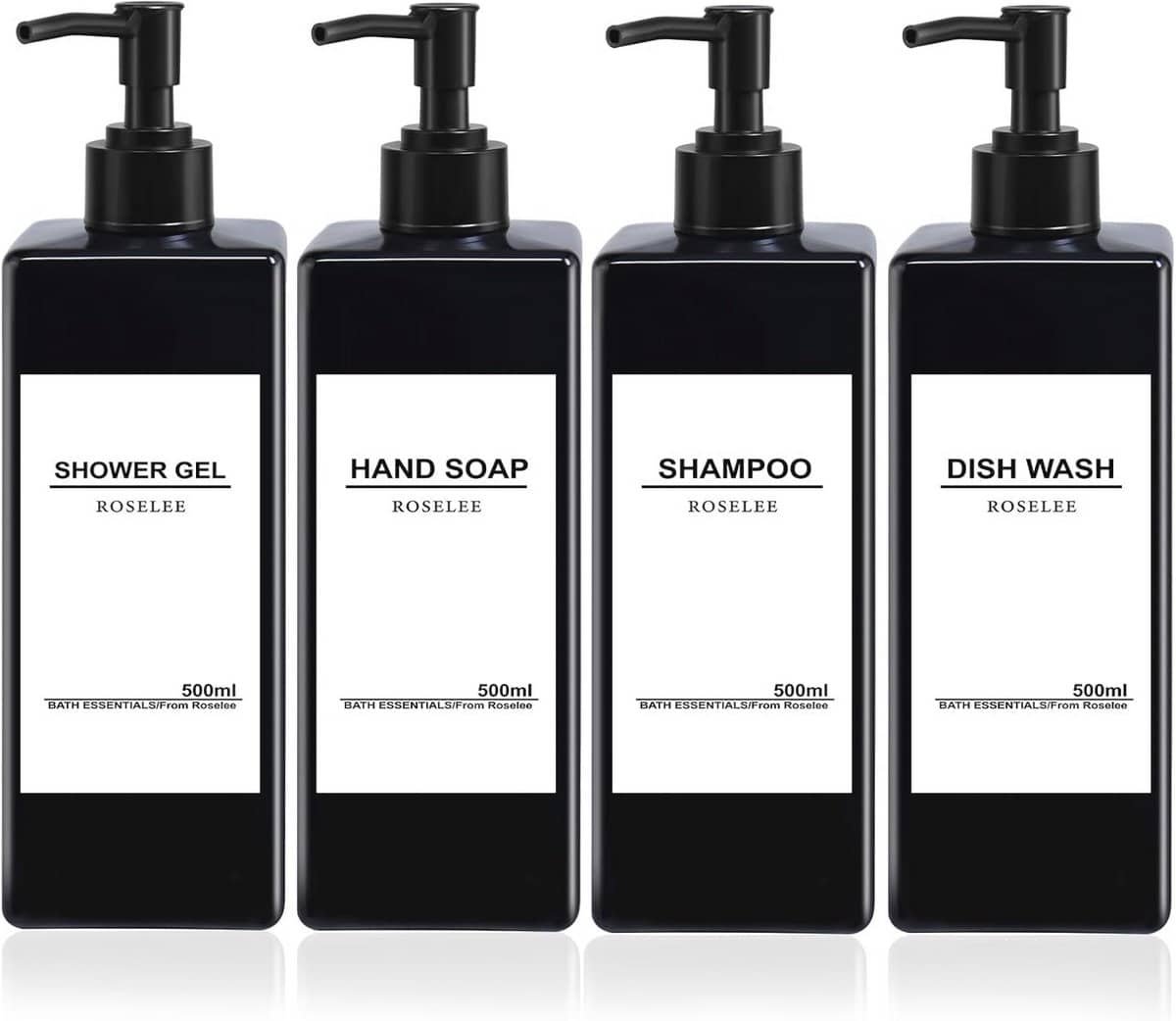 Zwarte zeepdispensers set van 4 stuks 500 ml met accessoires – douche en keuken essentieel
