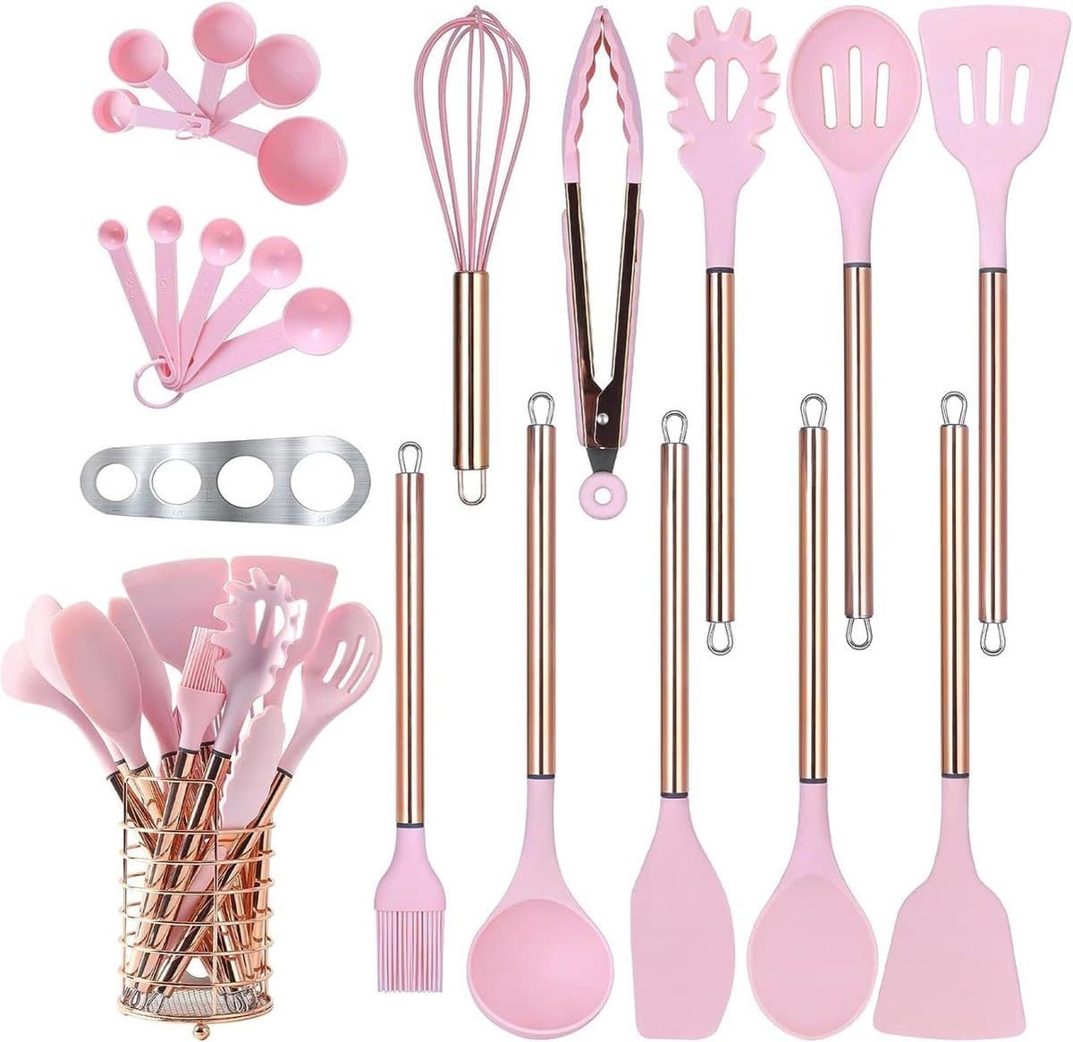22-stuks siliconen anti-aanbak kookgerei set – hittebestendige spatel set – roestvrij stalen handvat – keuken gadgets – keukengerei set (roze)