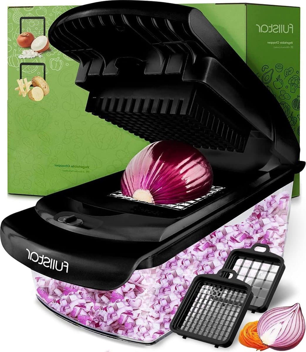 Groentesnijder – Groente- en uiensalade Chopper Handmatig – Aardappelchopper – Groentenhakker en dobbelstenen snijder – Keukengerei Gadgets (2-in-1 Zwart)