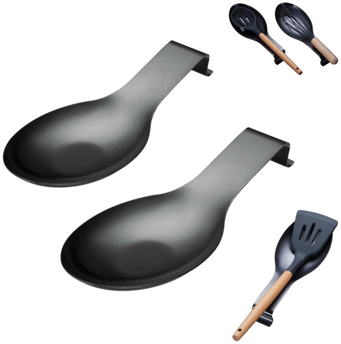 2 stuks – Lepel Mat – Keuken Gerei Houder – Keuken Tool – Keuken Accessoires – Lepelhouder voor op het fornuis – Houder voor keukenbenodigdheden – ZWART – Hittebestendig