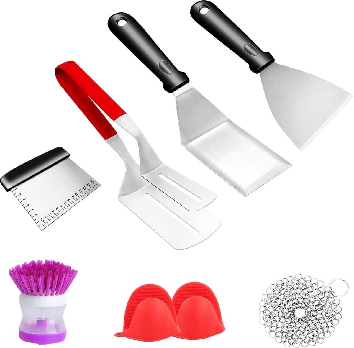 7-delige BBQ Accessoires Set van Roestvrij Staal voor Keuken Outdoor – Grill Spatel Tang Schraper Handschoen Reiniging bbq tool