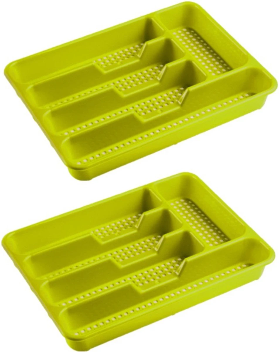 Bestekbak/bestekhouders 5-vaks lime groen. Afmetingen: ca. 34 x 25 x 4 cm. Materiaal: kunststof. Bestekhouders/bestekbakken keuken opberg accessoires.