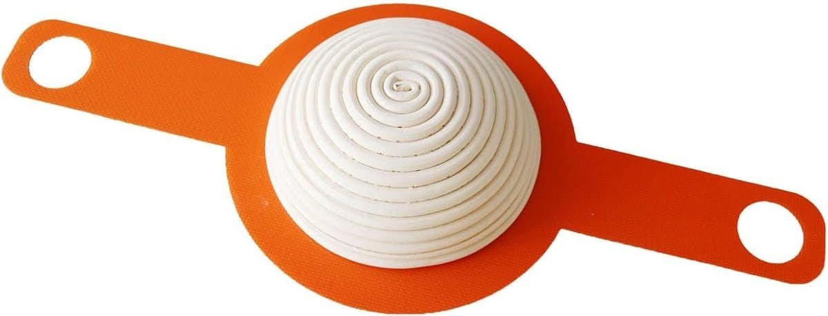 Inhoud van de verpakking: Je ontvangt een siliconen bakmat met gele achtergrond en rode rand, voorzien van een extra lang handvat. Deze bakmat maakt het veilig en gemakkelijk om deeg naar hete Nederlandse ovens of gietijzeren koekenpannen over te brengen. De mat is ongeveer 54,5 x 21 cm groot, met een handvat van ongeveer 17,3 cm lang, en is ideaal voor 8 en 9 deeg.