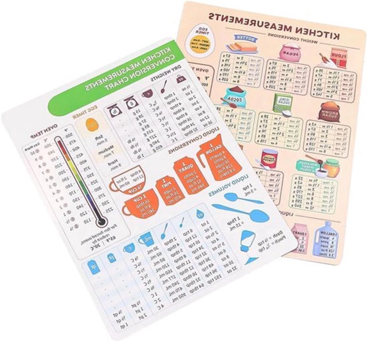 Keuken Conversie Grafiek Magneet – Set van 2 | Metrische Conversie Gids voor Koken, Meten Gewicht en Temperatuur | Keuken Bakken Accessoires