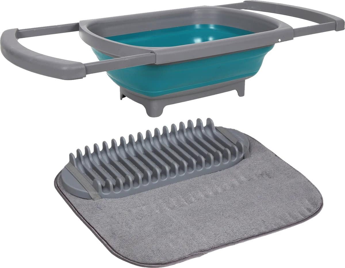 Opvouwbare afwasbak met afdruipmat – grijs/blauw – keuken benodigdheden – reis accessoires